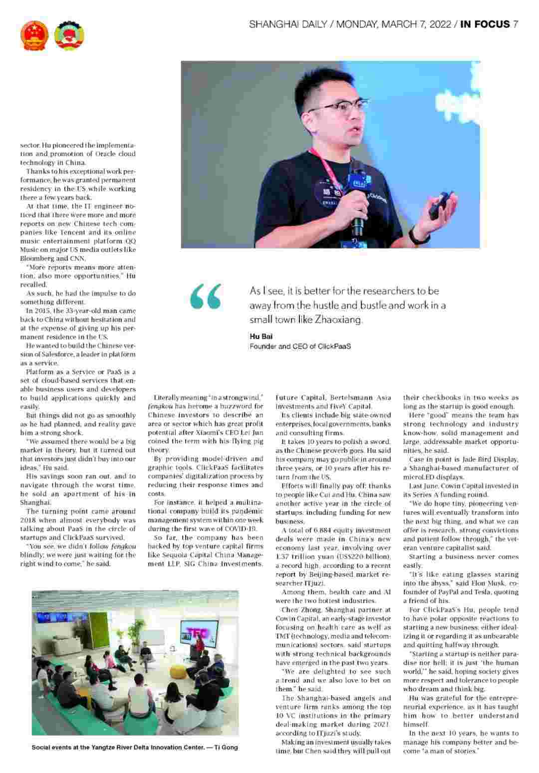 《上海日报》专访GOPAY钱包创始人、、、、CEO胡柏,,,,探究其创业背后的故事!!!